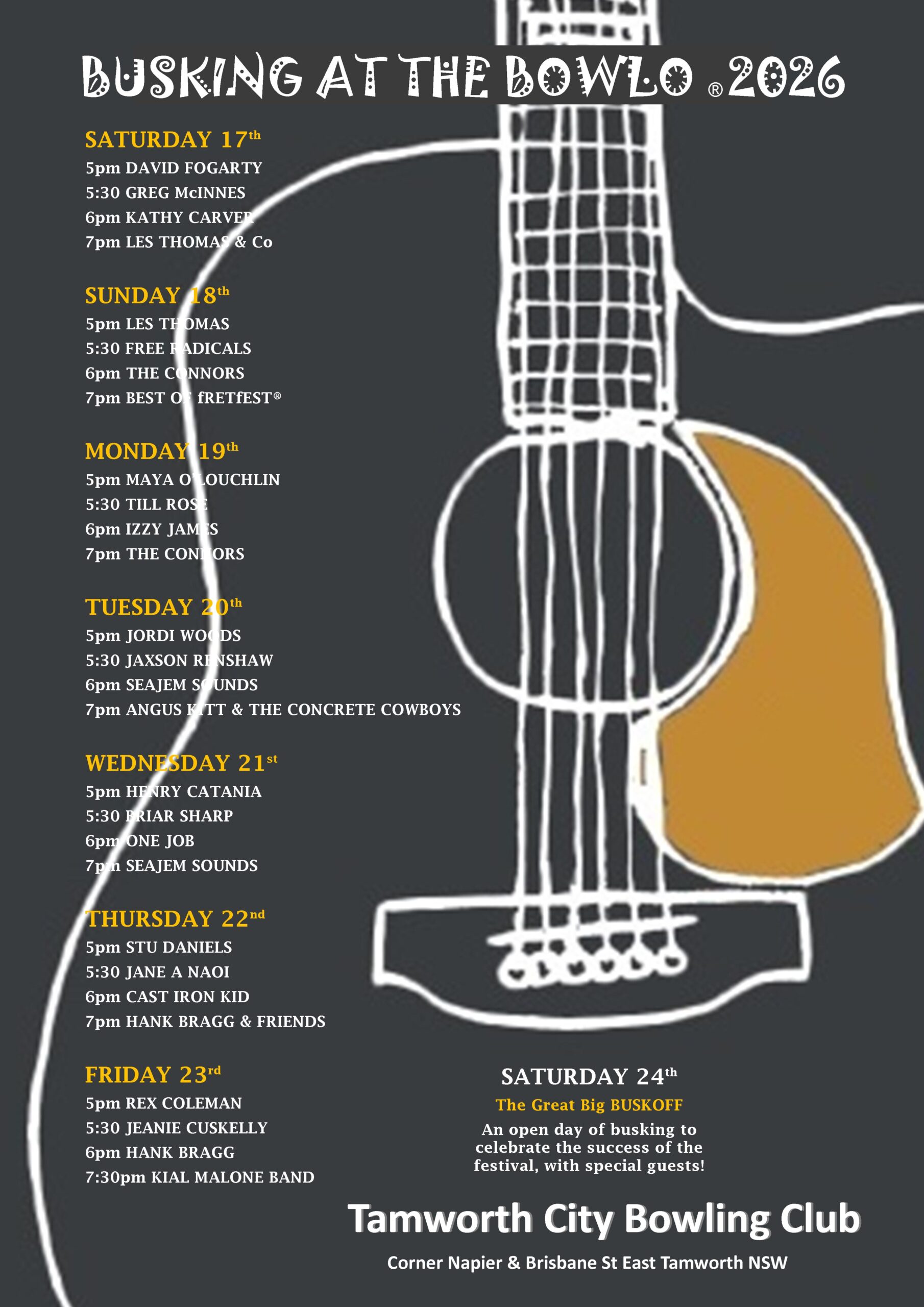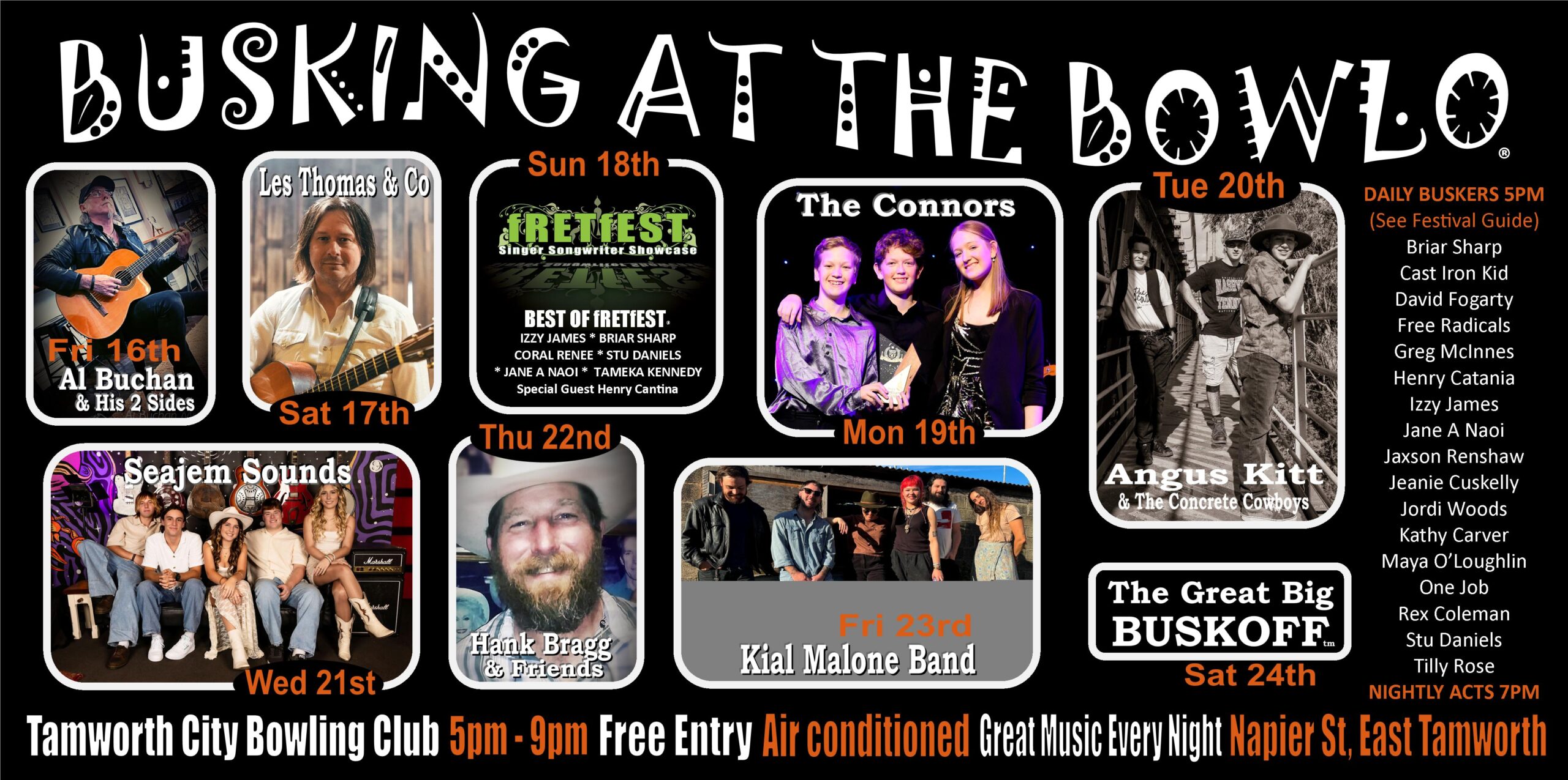 Buskers wishing to take part in January 2027 can request an Application Form via email to entries@fretfest.com and watch our socials for regular updates and information.